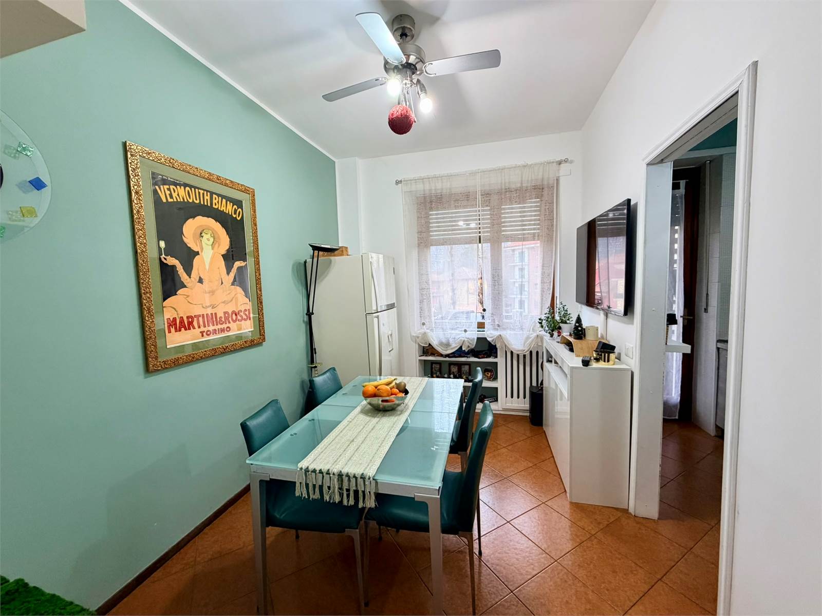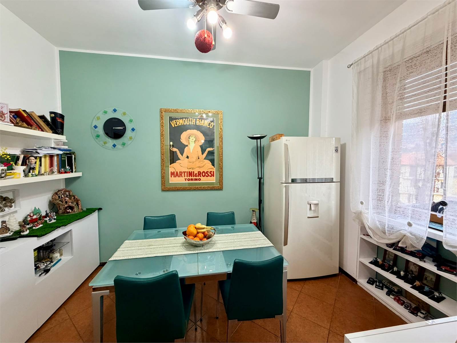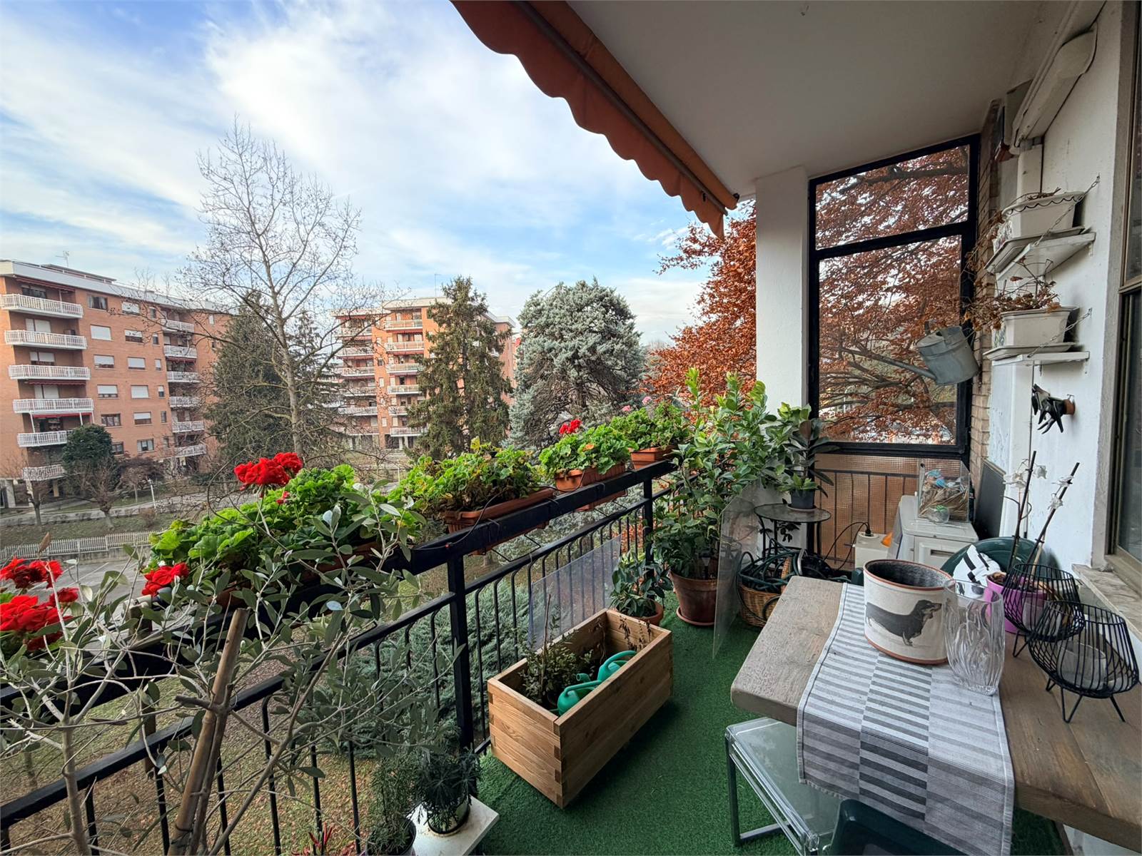 Moncalieri Strada Torino, all’ interno di un complesso residenziale signorile con ampio parco ed aree di parcheggio, e con facile accesso al parco che costeggia il fiume Po, dotato di ascensore (a breve con possibilità di accesso disabili) e di portineria, vendesi appartamento al 2° piano con doppia esposizione. L’ immobile è composto da un ampio ingresso con armadio a muro, una zona pranzo con cucina annessa ed uscita su un balcone di servizio con ripostiglio, un soggiorno con uscita sul secondo balcone panoramico, due camere da letto di buone dimensioni, un bagno finestrato con doccia e doppio lavandino. Completano l’ offerta una cantina, due posti auto nell’ autorimessa condominiale ed un posto auto assegnato nell’ area di parcheggio esterna. Caratterizza questa soluzione la particolare tranquillità della posizione, comunque inserita in un contesto comodissimo a tutti i servizi e al mercato rionale settimanale. Di prossima apertura nelle vicinanze un centro commerciale con supermercato e centro medico. L’ immobile è inoltre caratterizzato dall’ ottima esposizione ad Est-Ovest.
